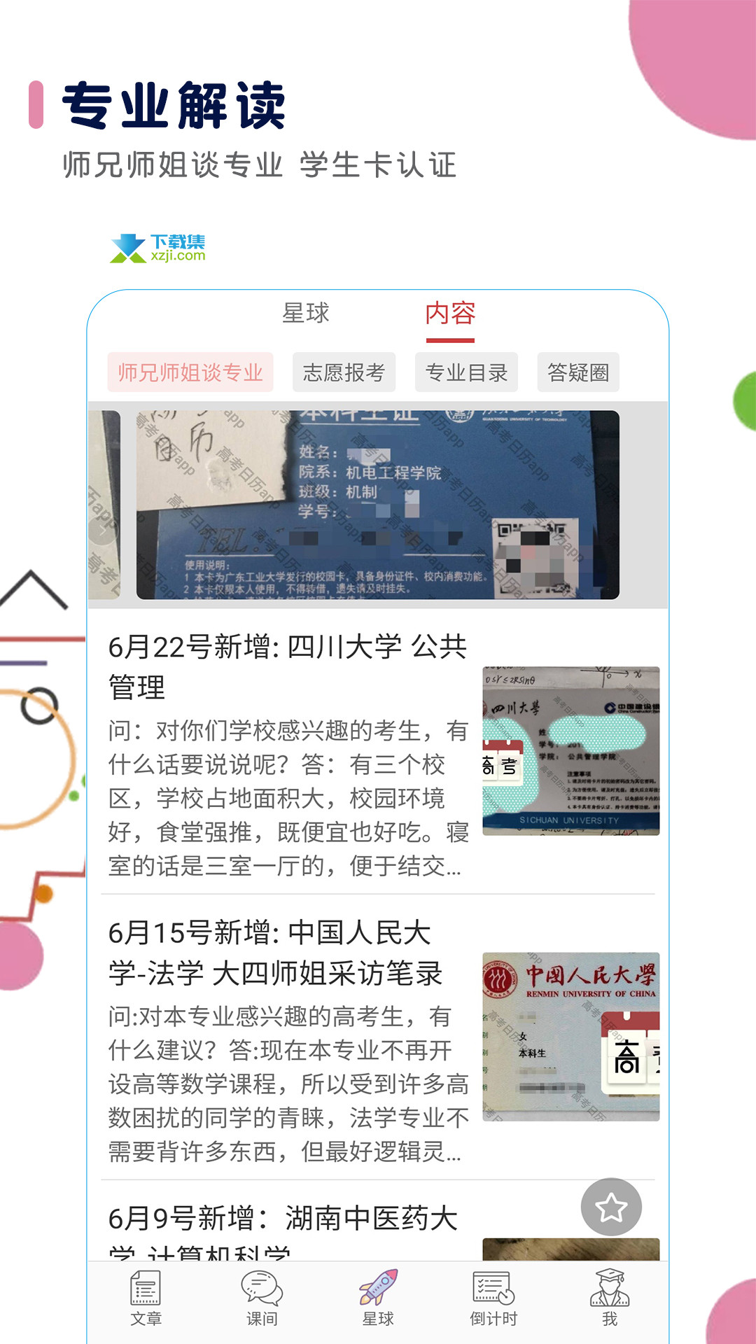 1. 师兄师姐谈专业,学生卡照片认证,独家原创文章带你解读各个专业
