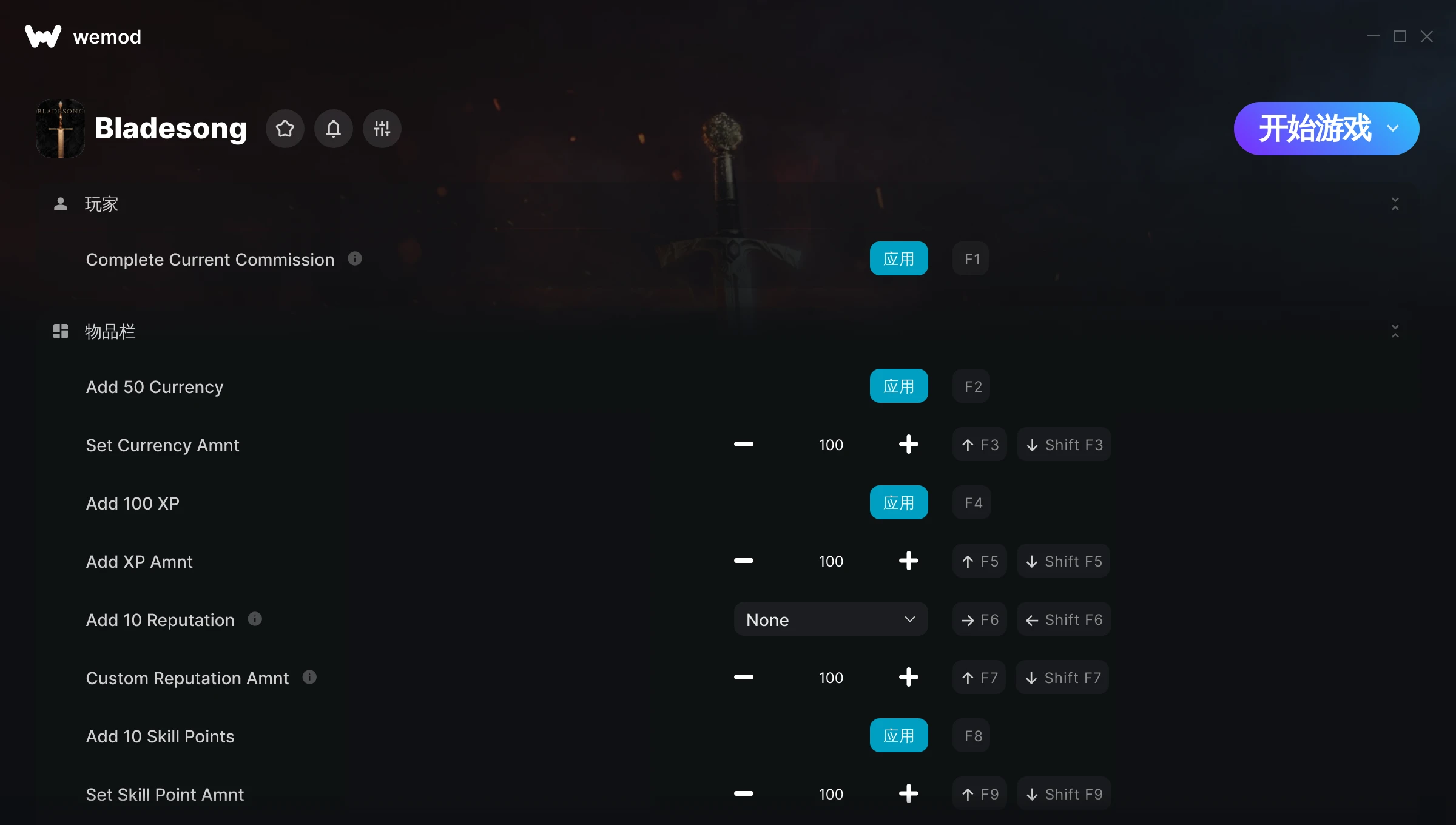 铸剑吟修改器Bladesong,内置34项功能,包含添加50货币、增加100点经验值、增加10点声望等,玩家下载后,可以免费使用。