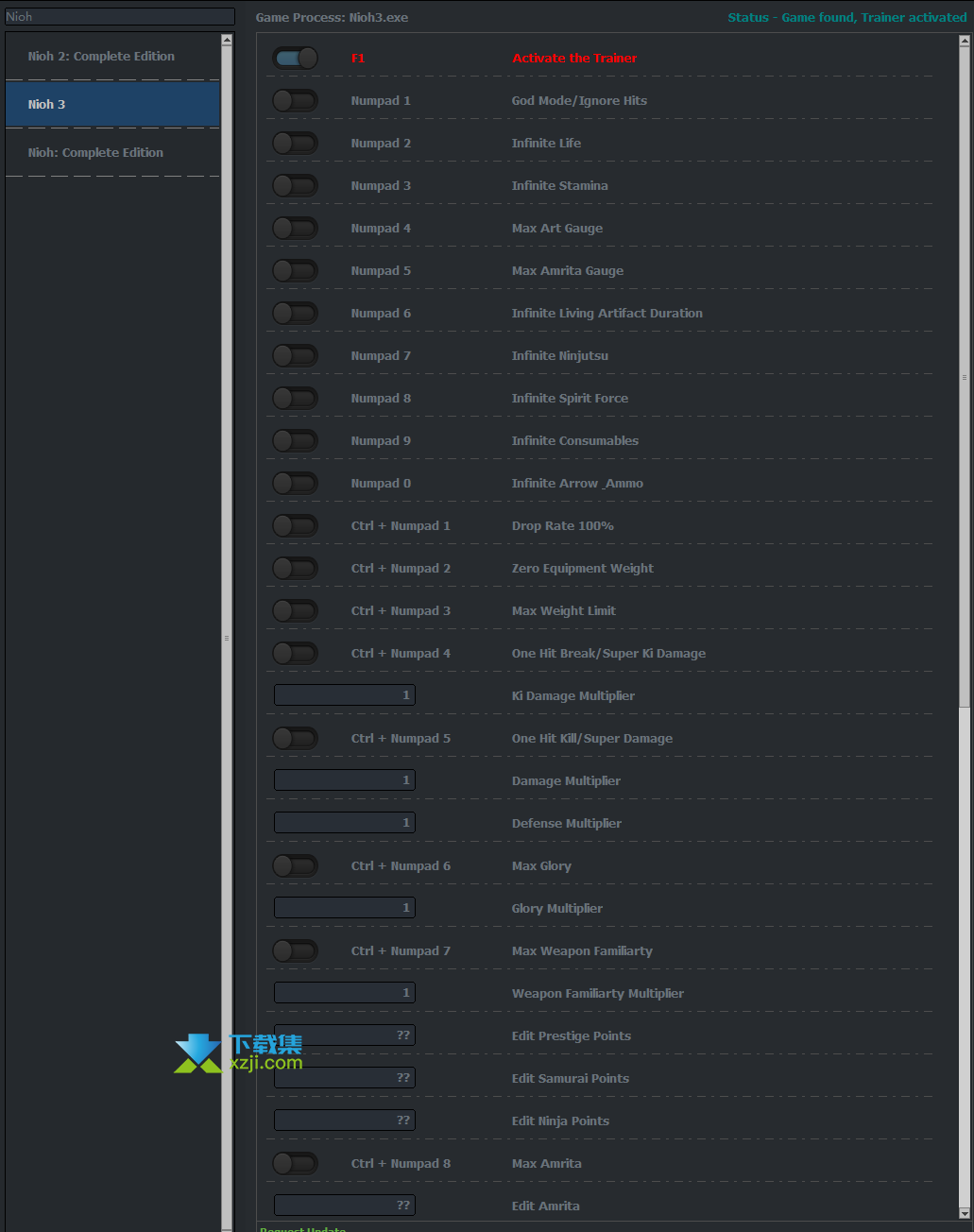 仁王3修改器 Nioh 3,内置49项功能,包含无限生命、无限耐力、一击必杀、超级伤害等,玩家下载后,可以免费使用。