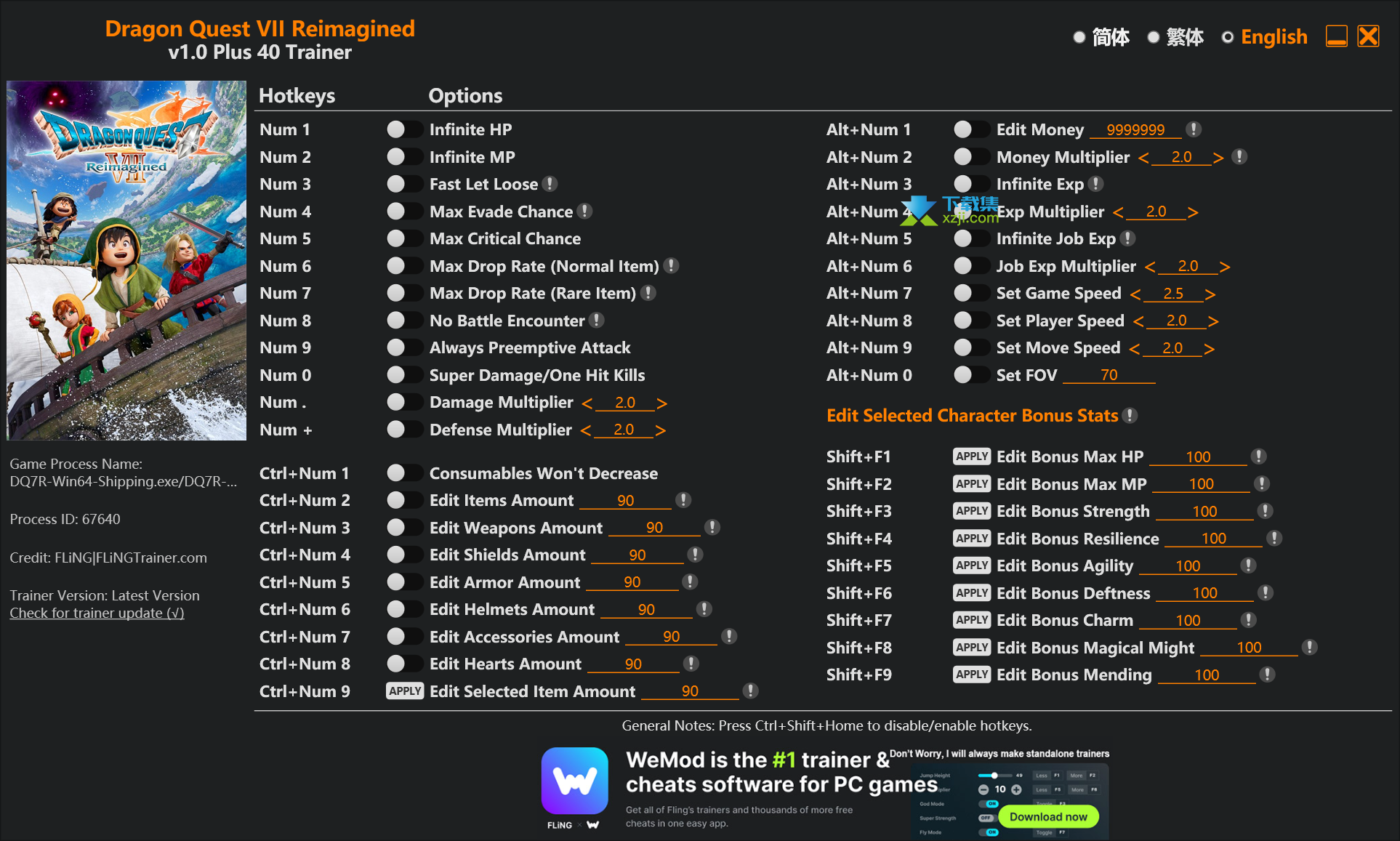 勇者斗恶龙7重制版修改器3DM版,内置40项功能,包含无限HP、无限MP、超级伤害、不遇敌等,玩家下载后,可以免费使用。