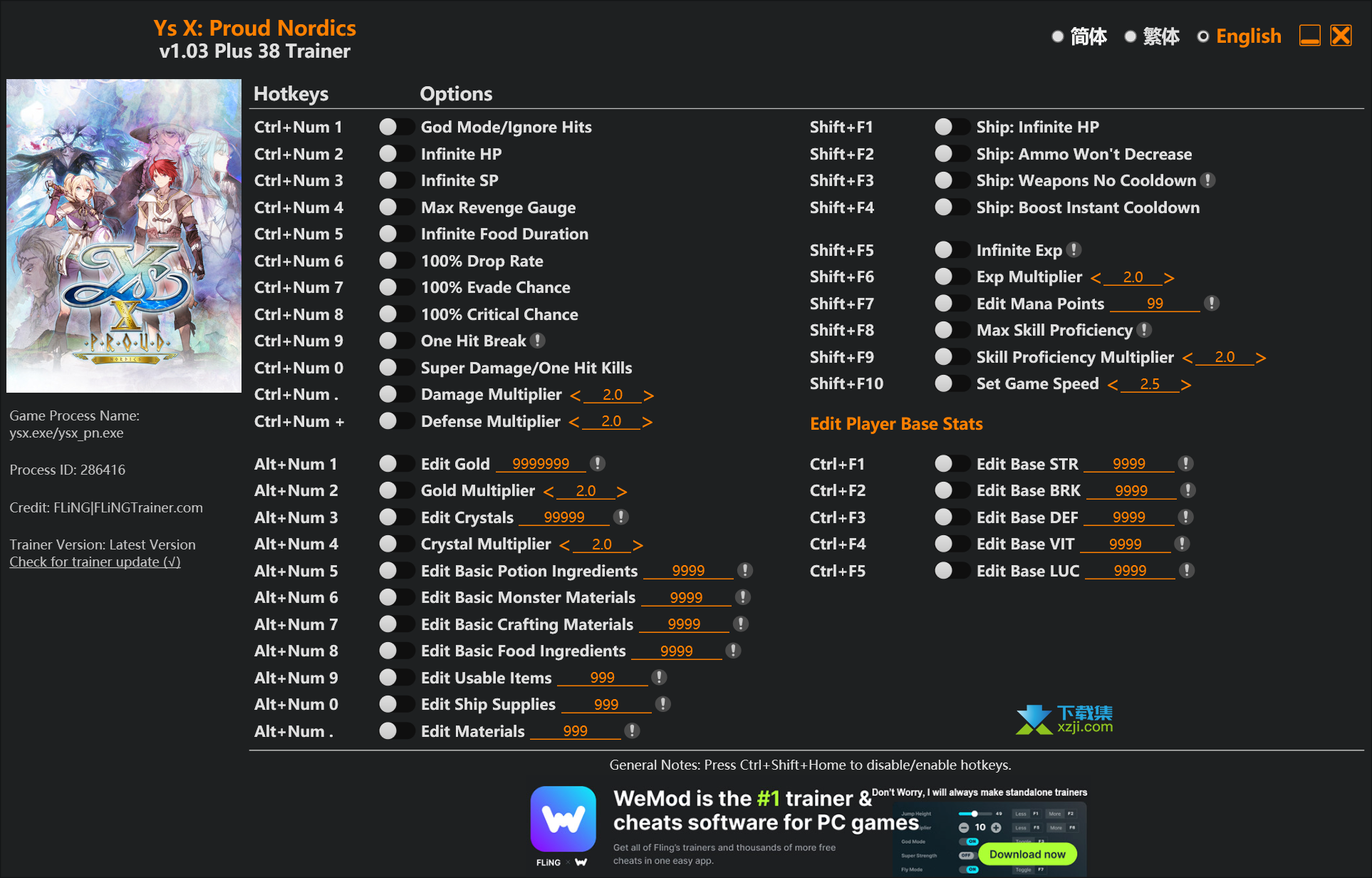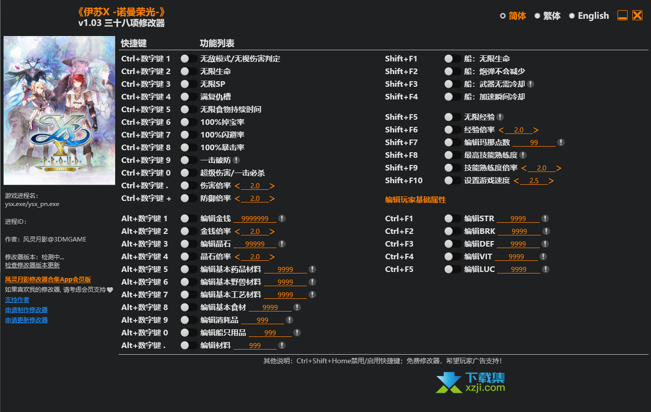 伊苏X诺曼荣光修改器(Ys X: Proud Nordics),内置38项功能,包含无限生命、无限SP、超级伤害等,玩家下载后,可以免费使用。