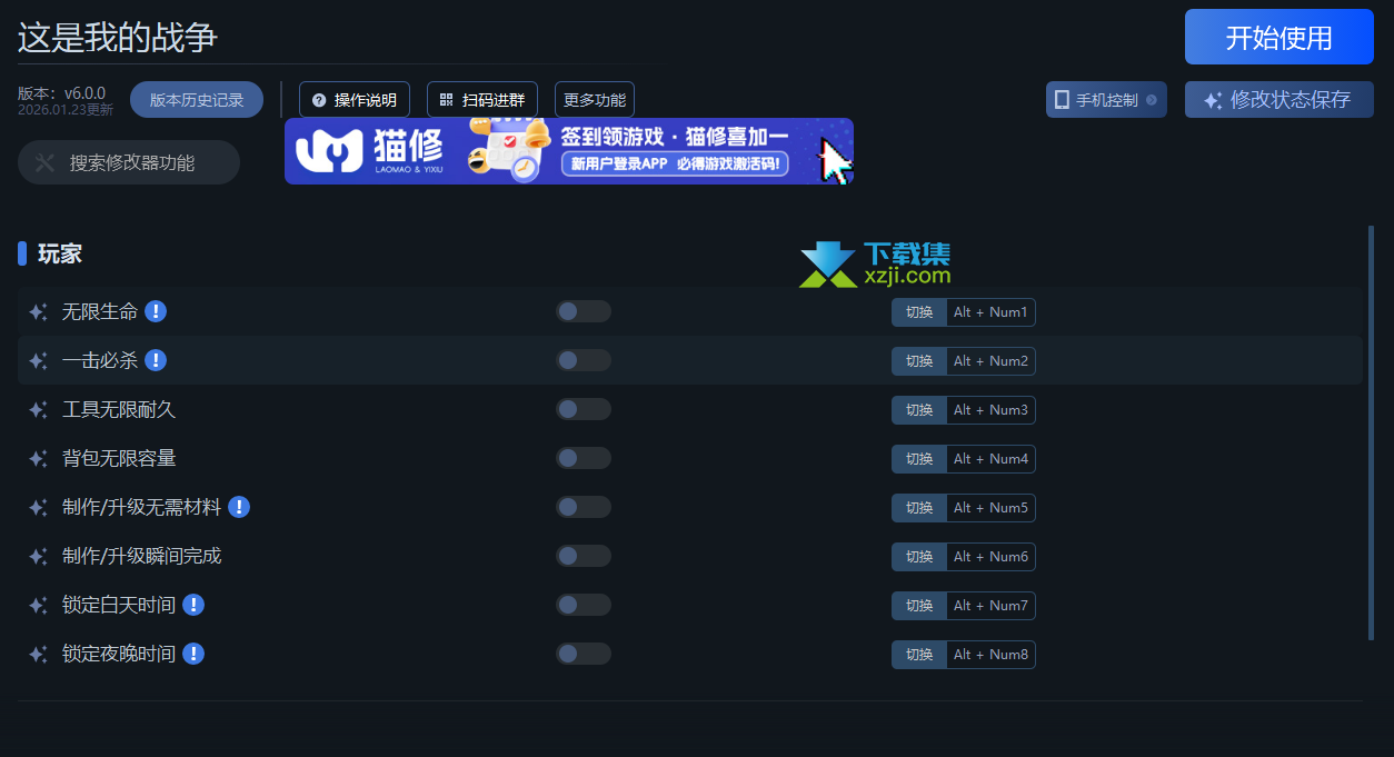 这是我的战争修改器This War Of Mine,这款经典的横版生存游戏最新版本的多功能修改器,无限生命、一击必杀、工具无限耐久等等都可以修改,让你轻松实现资源管理。欢迎前来xzji下载使用。
