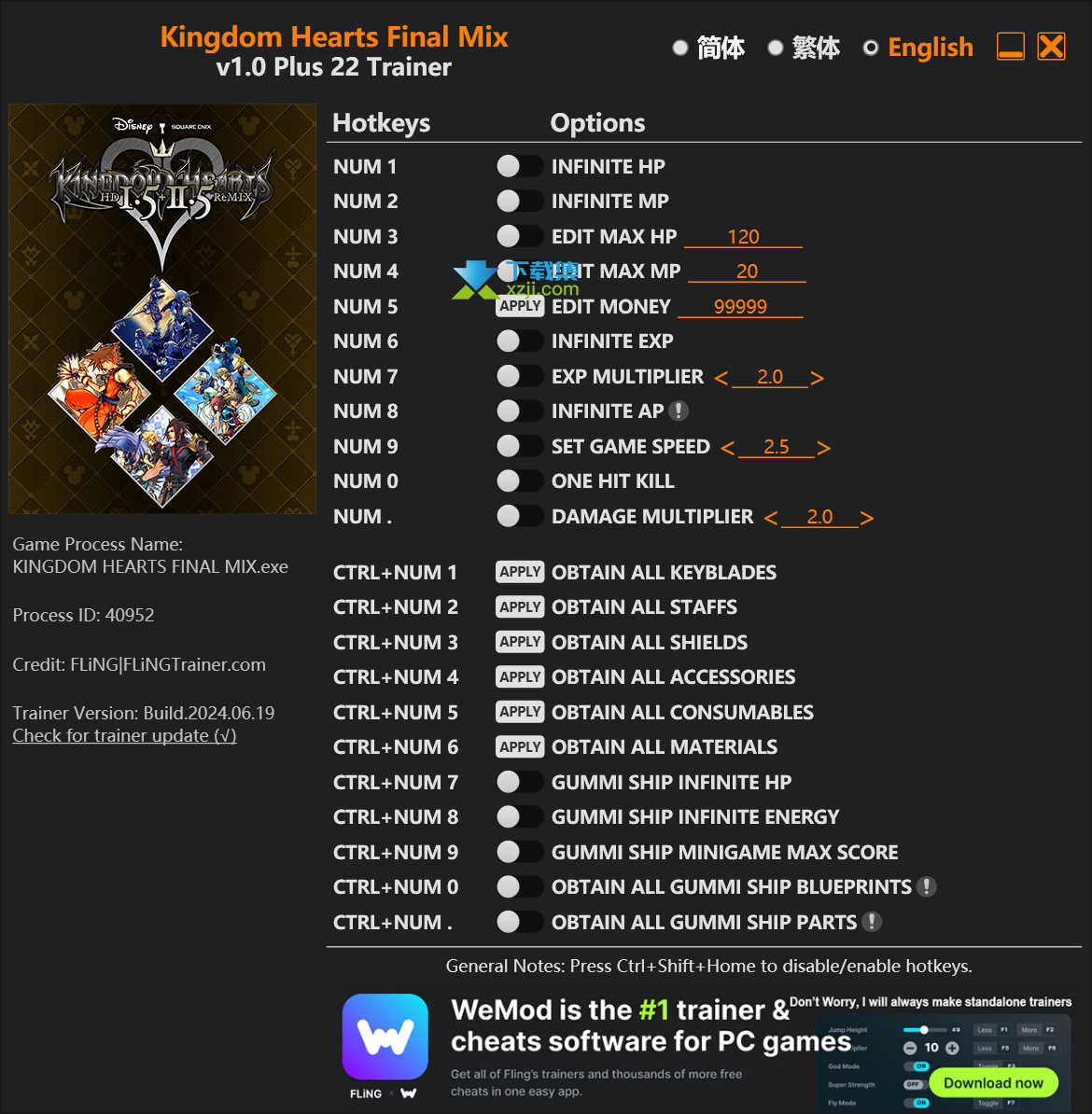 王国之心 Final Mix修改器由3DM会员风灵月影原创制作分享,具有无限HP、无限MP、编辑金钱、无限经验等二十二项修改功能,需要的用户快来下载使用吧。