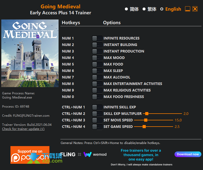 前往中世纪是一款中世纪背景殖民地生存模拟游戏,带领幸存者设计、建造和扩展定居点城堡,抵御入侵,让人民维持幸福。应对草寇流氓的袭击和突发的自然灾害,为你的人民分配工作并注意他们的情绪,在黑暗的中世纪开拓一方乐土。今天小编为玩家带来了由风灵月影制作的前往中世纪Early Access十四项修改器下载,使用后可以提升游戏体验,喜欢前往中世纪的玩家千万不要错过下载哦。