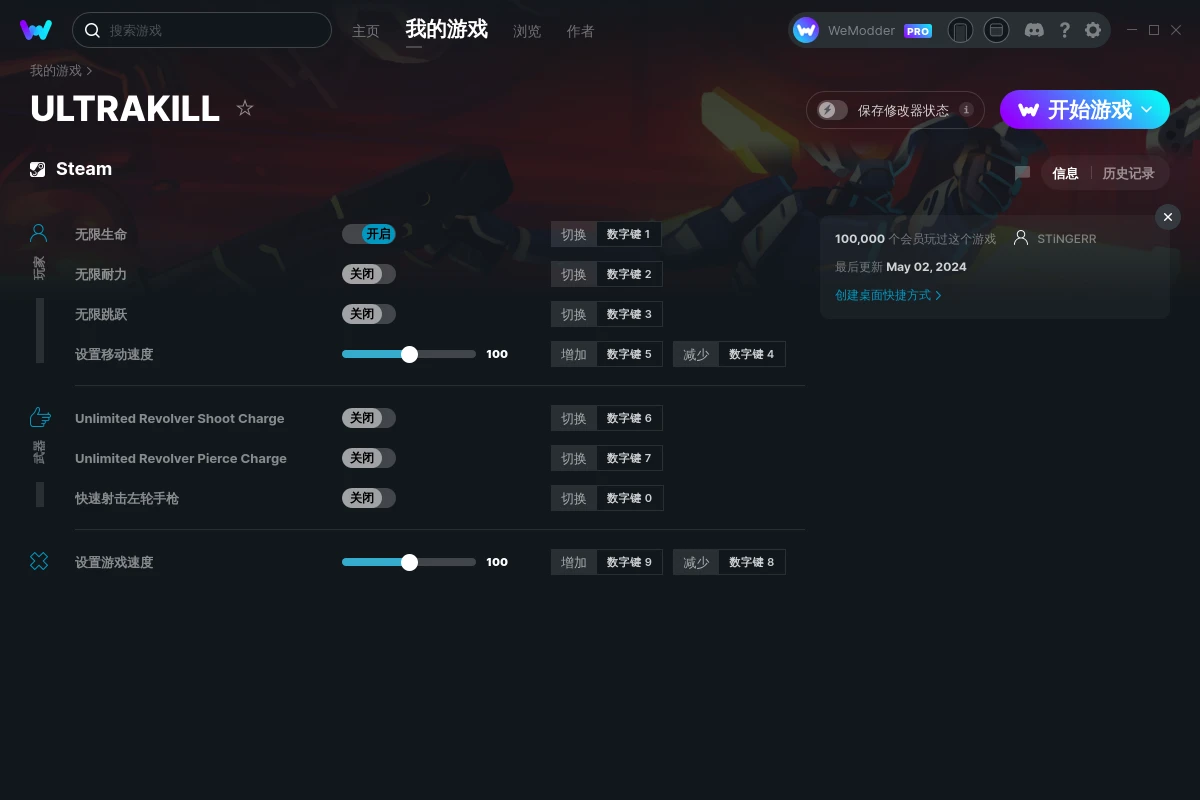 ULTRAKILL修改器,这款复古硬派射击游戏七项修改器,可以修改生命、体力、跳跃修改,让你无限射击和冲刺充能,尽情射爆画面内的所有敌人。有需要就来xzji下载使用。