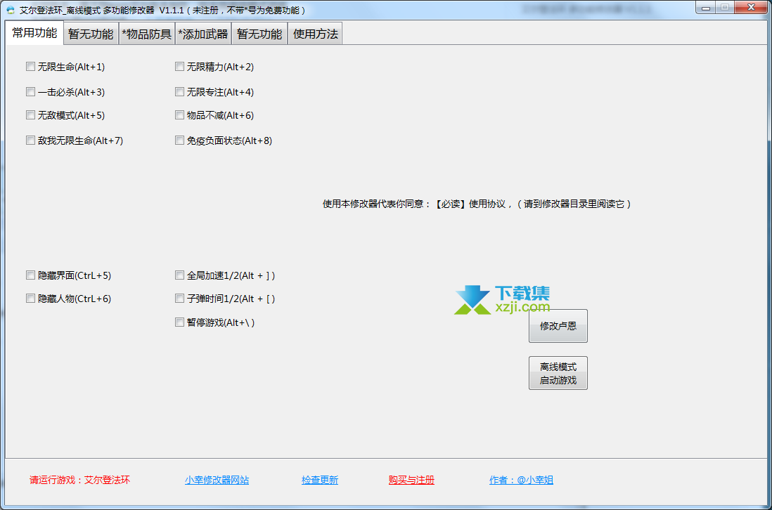 2022/03/07 v1.2.0:新增无限负重、100%掉落率、无限箭矢、死亡不丢卢恩、立即取回卢恩