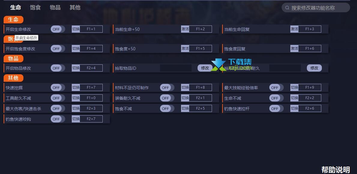 3.开启修改器各主初始项再使用各子修改项[无主初始项则不用开启][主初始项:如开启...修改]。