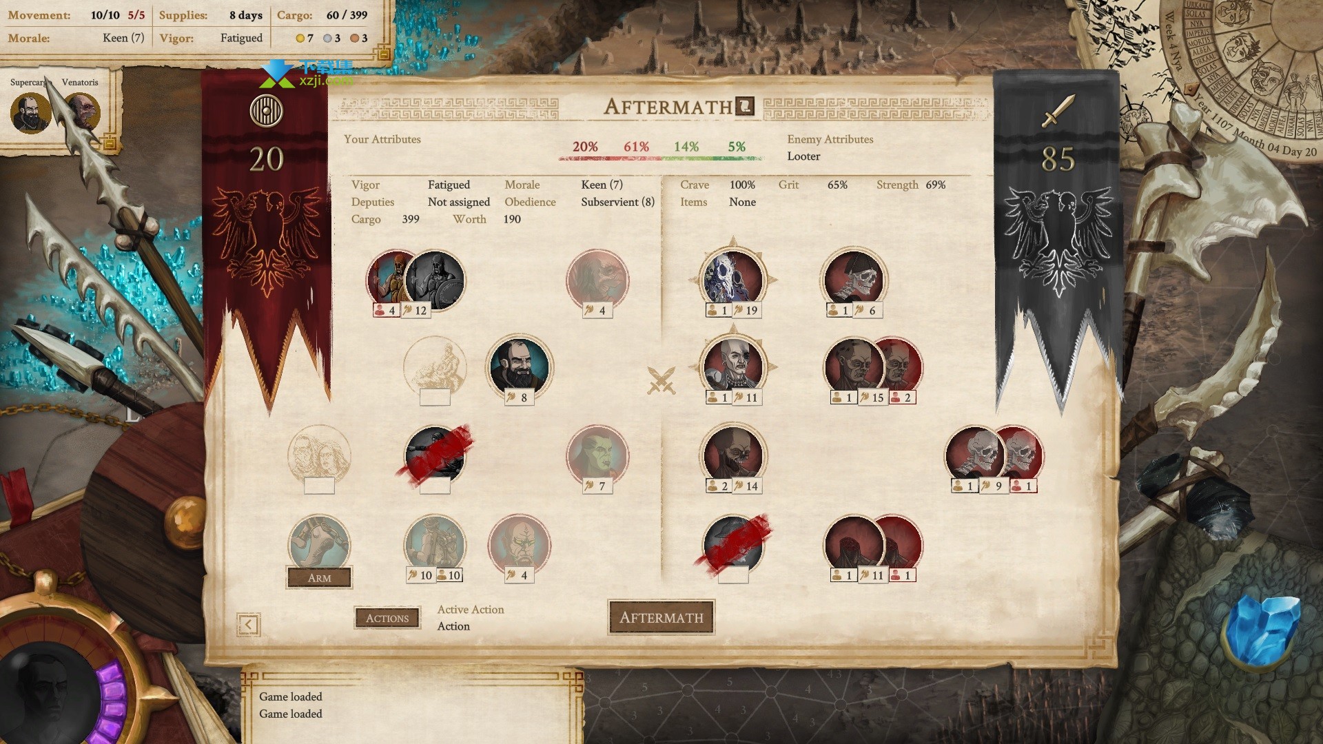 旅程必须精心计划和准备,以免以灾难告终。有效管理您的补给、士气和队员的活力值,以求生存。在废土上运输货物或贵重物品,或从其他地方掠夺。您必须妥善管理好队伍 中工人、斗士、侦察兵和奴隶各个成员,才能优化队伍的效率。