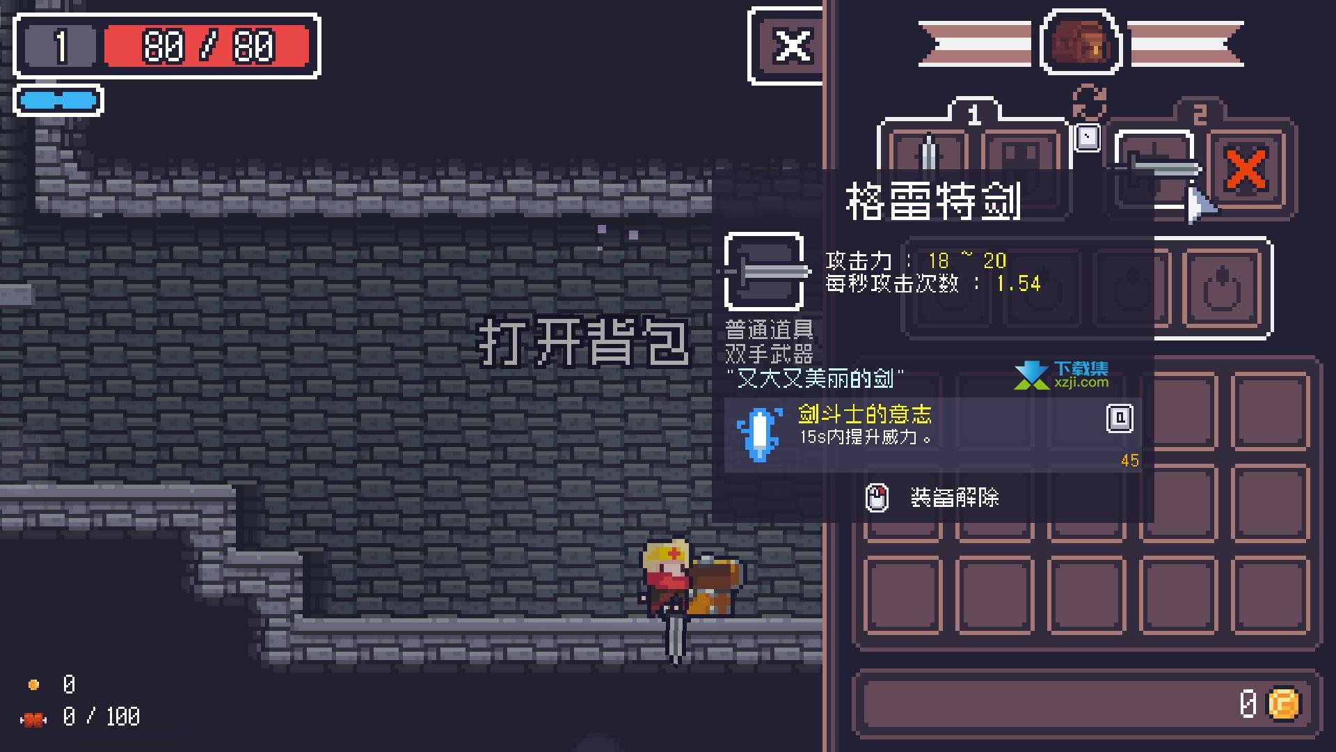 Dungreed是一个像素风格的2D平台动作游戏。玩家扮演的是一名王国冒险家,从被毁坏的城镇探索未知的地下城,找出城镇被摧毁的原因,并拯救村民,重建城镇。游戏采用随机生成设定,拥有有趣的故事、武器技能、救援系统、很多BOSS等特色。