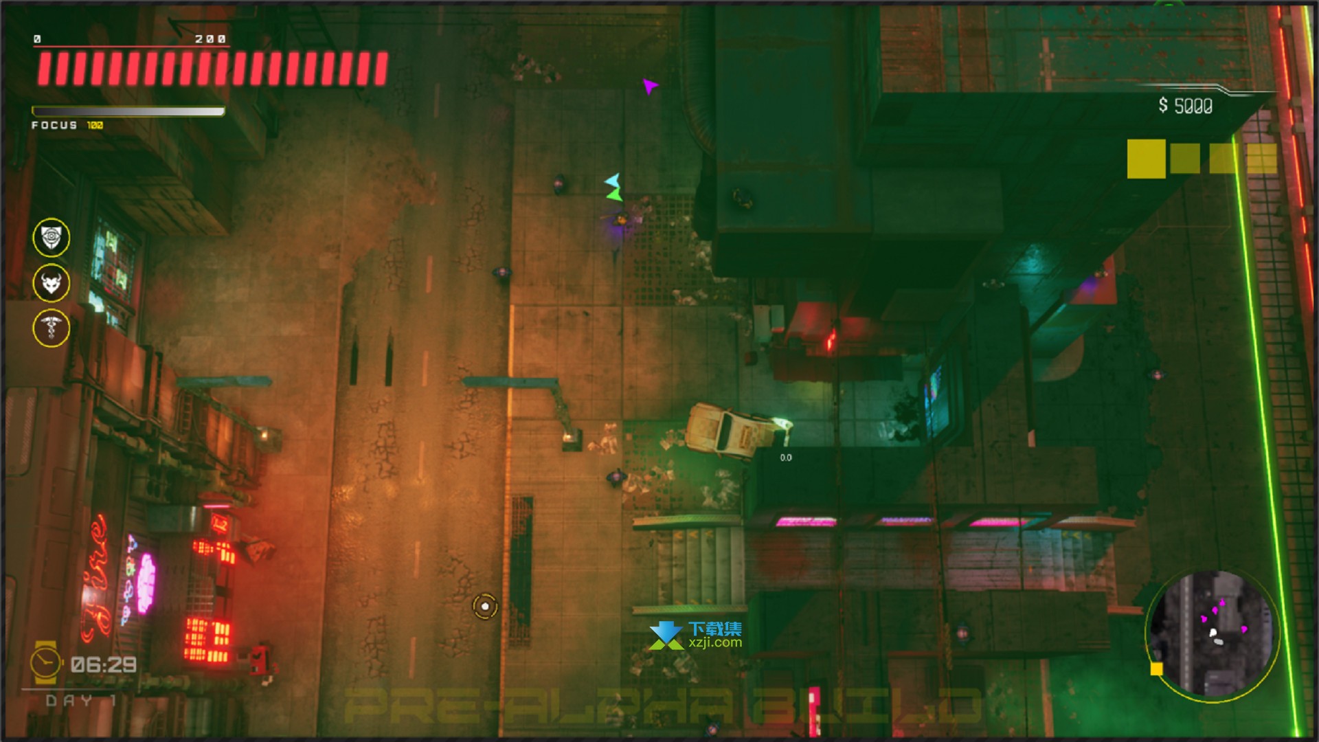 故障朋克是一款赛博朋克风格的俯视视角动作射击游戏,背景设定在一个反乌托邦未来世界的霓虹都市中。在巨型企业垄断和帮派混杂的四个地区中决定通过何种方式生存,经历火爆的枪战和飞车追逐,引导故事走向不同的结局。
