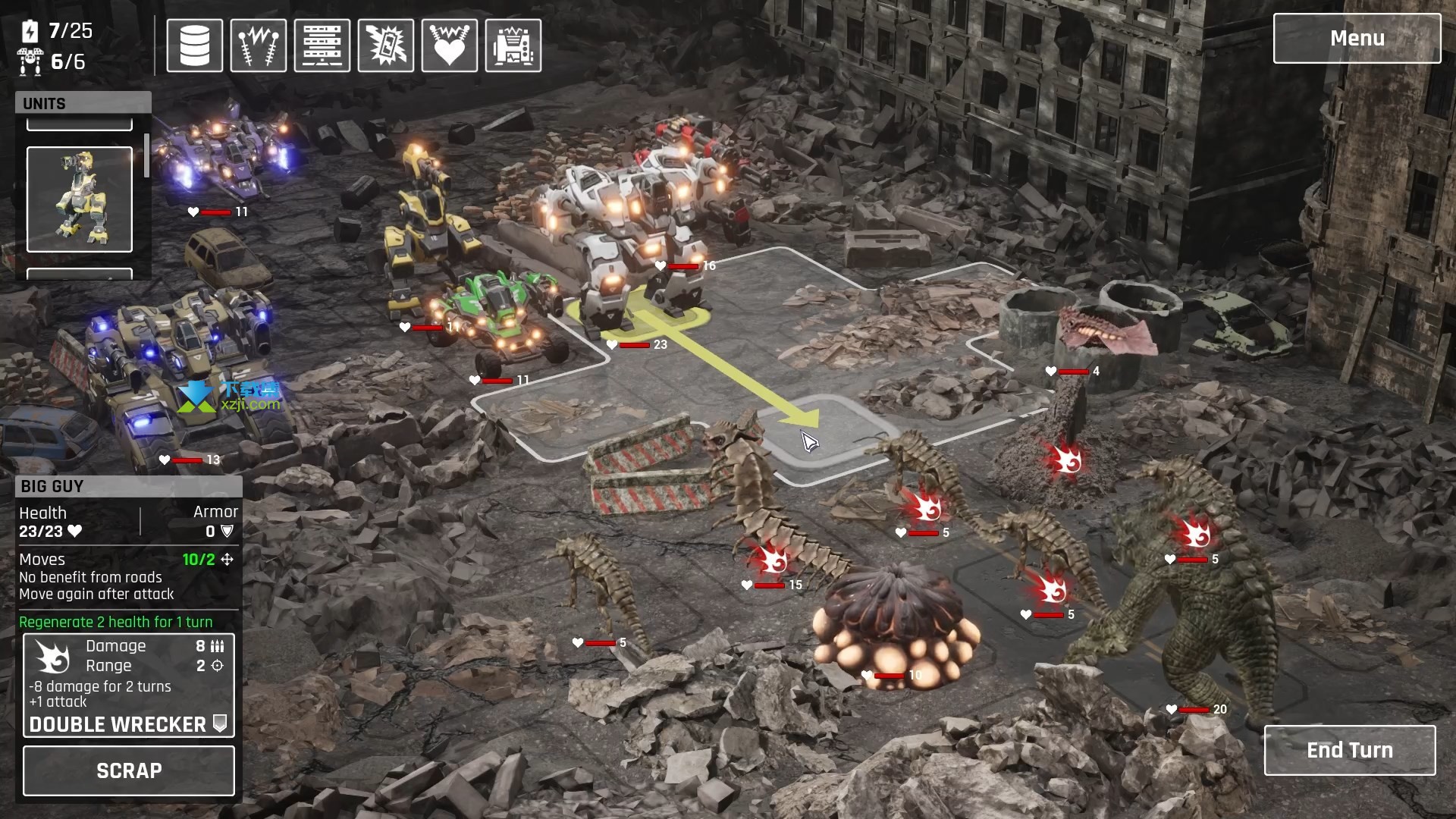 回合制战斗:您可以按任何顺序移动机甲的位置并使用它们进行攻击。然后就轮到敌方怪物群了...
