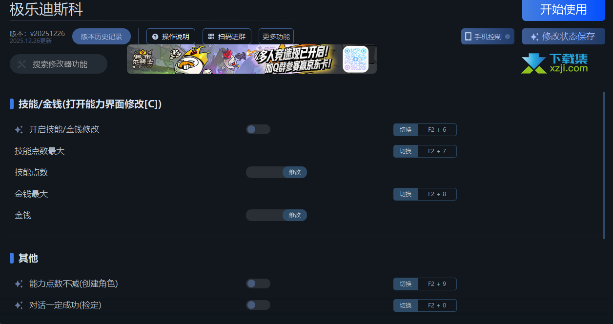 1.开启技能点数/金钱修改:开启后,打开能力界面[C]使用,技能点数/金钱变动时刷新。