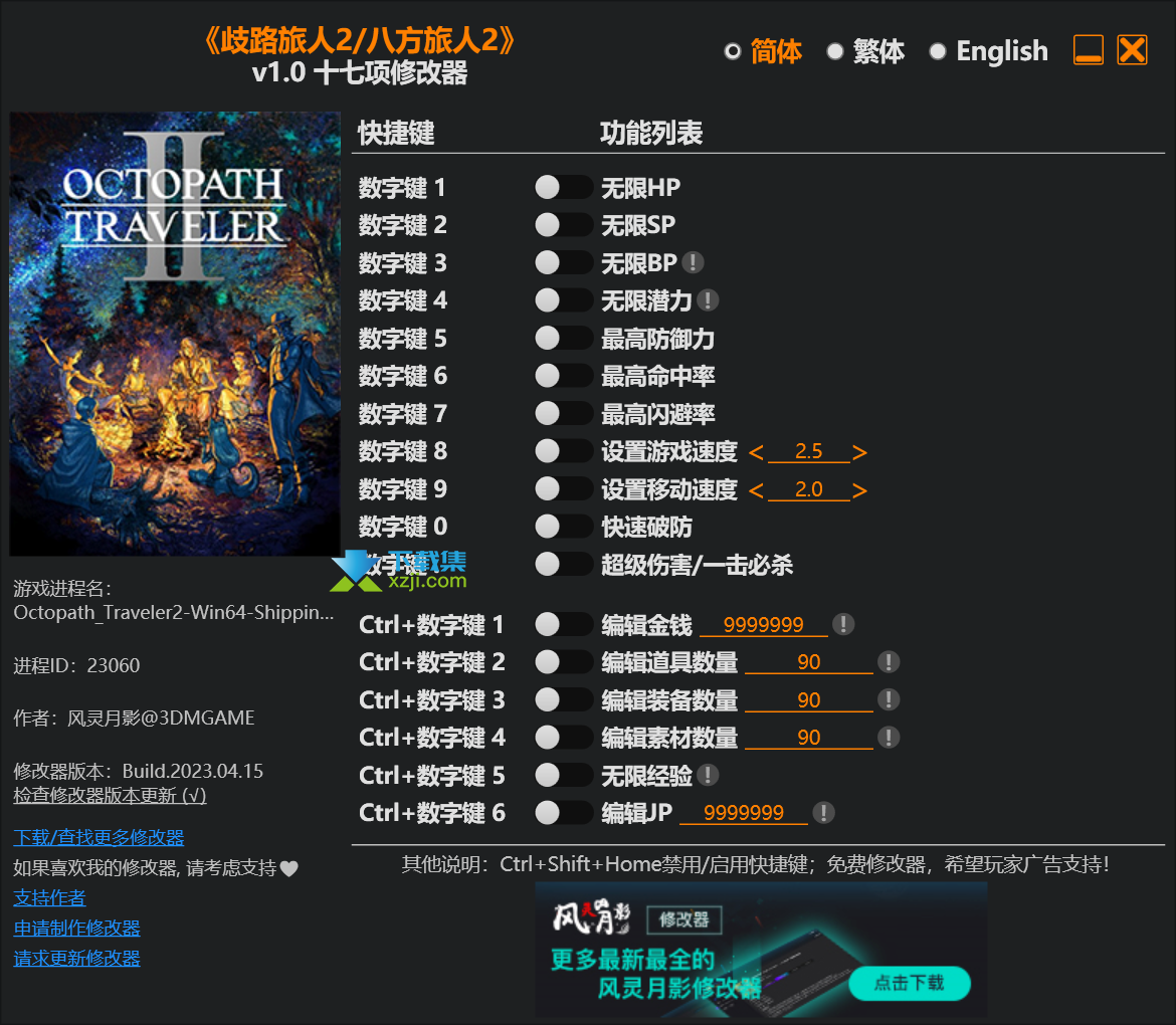 八方旅人2修改器,具有无限HP、无限SP、无限BP等修改功能,使用后可以帮助玩家快速升级游戏任务。