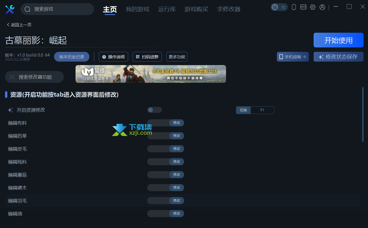2、资源修改先开启功能后按tab进入资源界面修改,改完切换页面生效