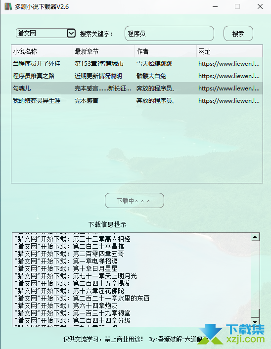 多源小说下载器支持多个小说源小说的搜索及整本下载功能,多进程多协程的方式实现小说的在线搜索、下载及合并,下载的内容在软件当前运行目录下,包括合并的txt和另外一个保存分章节的文件夹。