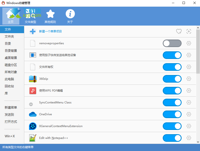 • 管理常见位置右键菜单、自定义添加右键菜单