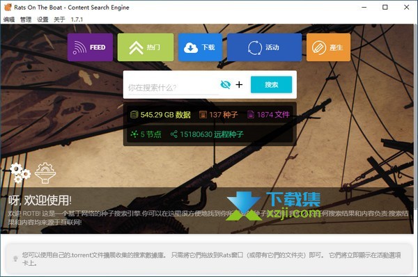 Rats on The Boat是一款BT下载工具,该工具有自己的搜索引擎,软件免费,界面美观,使用简单,bt种子的搜索以及下载十分快速,用户下载不用担心速度慢。
