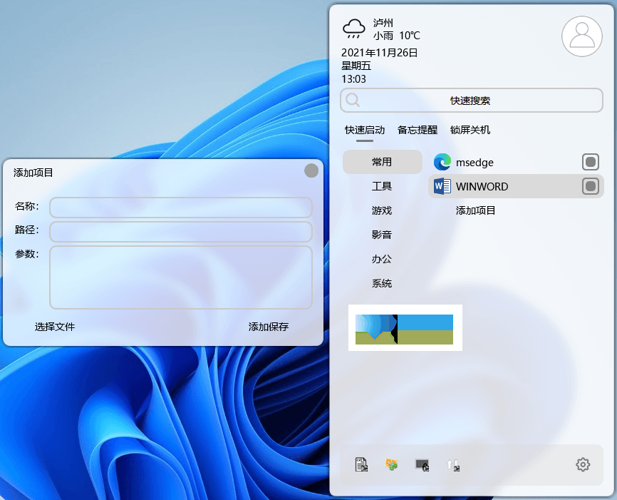 C启动是一款桌面管理软件,快速启动、主打界面缓动,搜索快速启动项目,备忘录提醒等功能都有软件会联网获取更新信息、MD5、发送电脑配置系统-CPU-内存软件占用效率等!