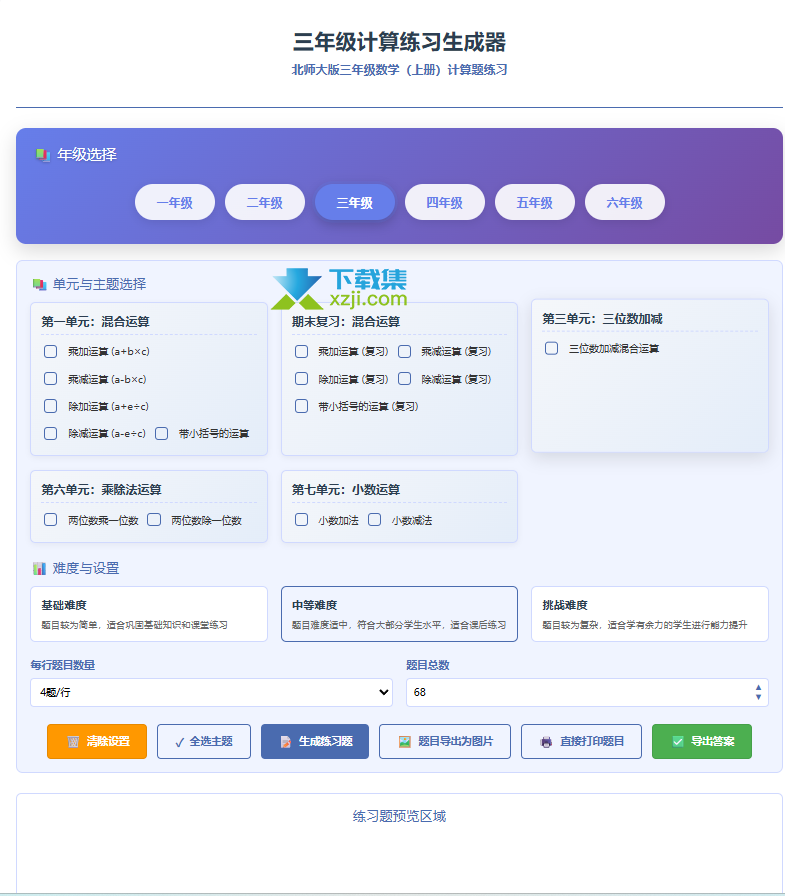 快速出题:支持加法、减法、乘法、除法等多种运算类型的题目生成