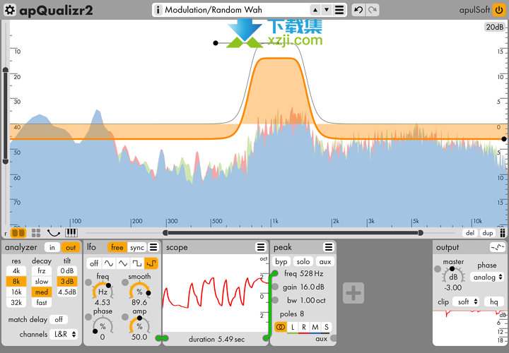 apulSoft apQualizr2是一个基于多频段均衡器的音频插件,该均衡器位于带有模块化效果系统元素的频率分析器之上。它具有高质量低延迟滤波器的图形编辑和各种滤波器参数的模块化调制。它可用于所有标准 EQ 应用程序,并且由于包含动态和 lfo 模块,可以产生许多调制和动态效果。