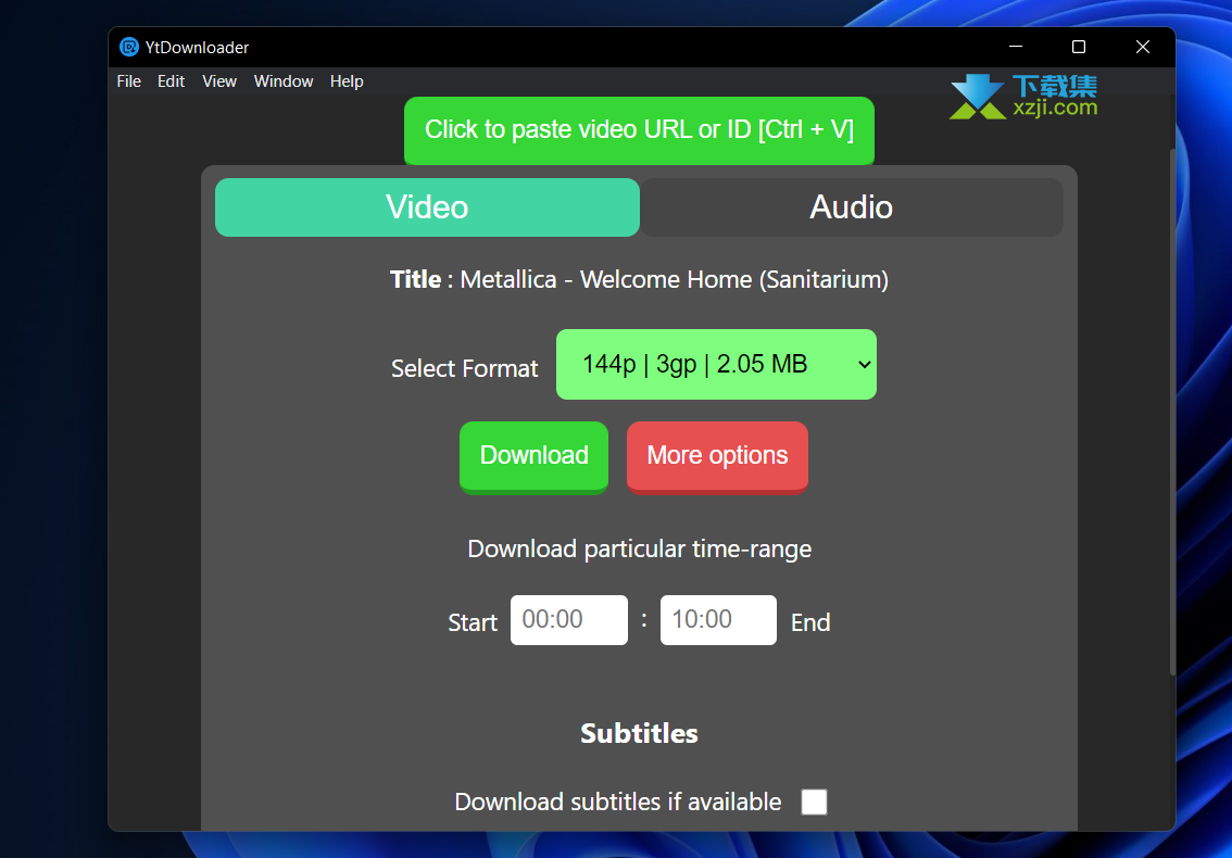 根据下载源,您将有多个视频质量版本可供选择。此外,您可以抓取字幕(如果有的话),您不必下载整个视频,也可以下载特定的时间间隔。对于后一种选项,您需要在专用区域中输入开始和结束计时器。