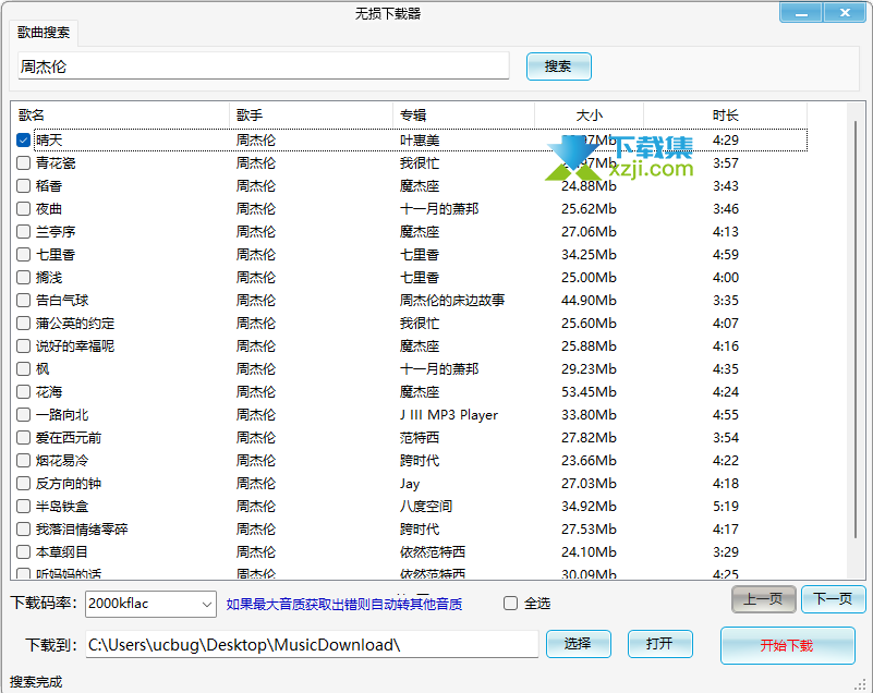 资源丰富:输入歌曲名后,可搜索到包括歌曲名、歌手名、专辑名称、文件大小和时长等详细信息,一首歌可以找到数百个资源。
