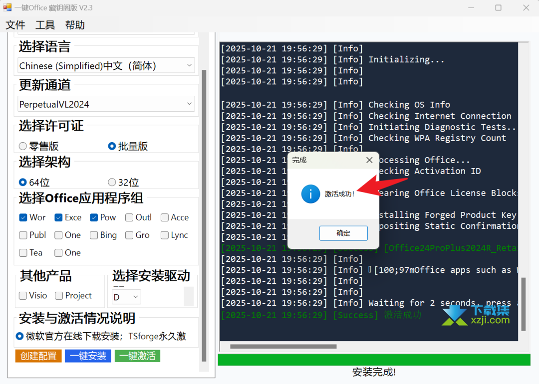 在市面上众多Office安装与激活工具中,一键Office 藏钥阁版凭借“安装即部署,点击即激活”的简洁体验脱颖而出。相较于其他需要命令行或配置脚本的工具,它显得尤为友好,几乎零学习成本,真正做到了“一键搞定Office”。无论是办公新手,还是需要快速部署办公环境的IT人员,这款工具都值得收藏备用。尤其在当下强调效率与稳定性的办公场景中,它不仅节省时间,也提升了整体操作体验。