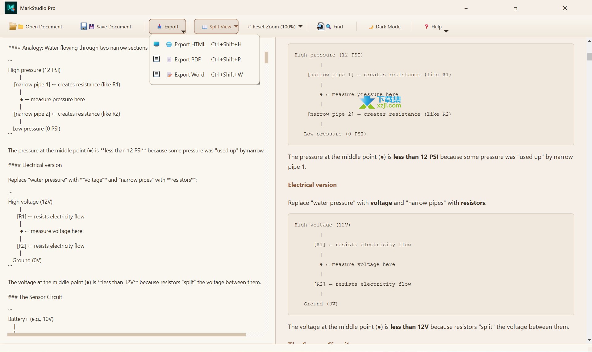 MarkStudio Pro 是一款主打“Privacy-First / No Cloud Required(不依赖云端)”的 Windows Markdown 编辑器,面向日常用 Markdown 写作、但最终需要交付 Word(DOCX)、PDF、HTML 等“可真实提交”格式文档的用户。它强调在本地完成编辑与导出流程,让你用 Markdown 的高效率写作,同时输出更符合职场/学术/商务场景的成品文档。