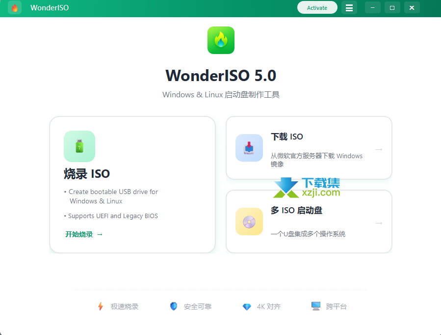 WonderISO 不只是个 ISO 烧录工具,它还支持烧录、提取、创建和编辑 ISO 镜像文件,日常跟镜像文件有关的常见操作,基本都能在一个软件里搞定。