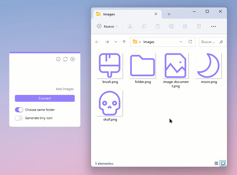 借助拖放功能,可一次性快速将多张图片转换为图标。